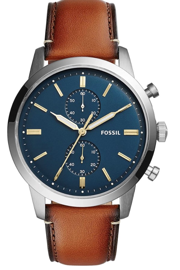 Genuine brown leather band with buckle closure; interchangeable with all 22mm Fossil watch bands